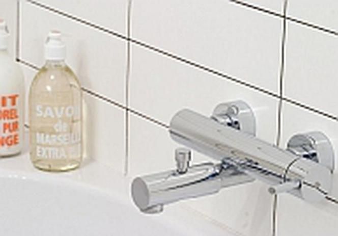 Potom je čas na novú glazúru. Robert našiel takmer dokonalé dlaždice - biele a matné, ale nanešťastie príliš veľké, rozmery 20 x 30 cm. Tak nariadil dodávateľovi, aby na ne urobil vodorovné rezy. Keď bol spoj aplikovaný na medzery medzi dlaždicami, rezy boli tiež vyplnené hmotou. Teraz dlaždice vyzerajú, že majú požadované rozmery 10 x 30 cm. Namiesto dlaždíc sa nad umývadlom objavilo zrkadlo - veľké, po celej šírke steny. Na niekoľkých miestach, medzi jednotlivými dlaždicami na stene, Robert plánoval teakové dekorácie - rovnaké, z ktorých mala byť podlaha.