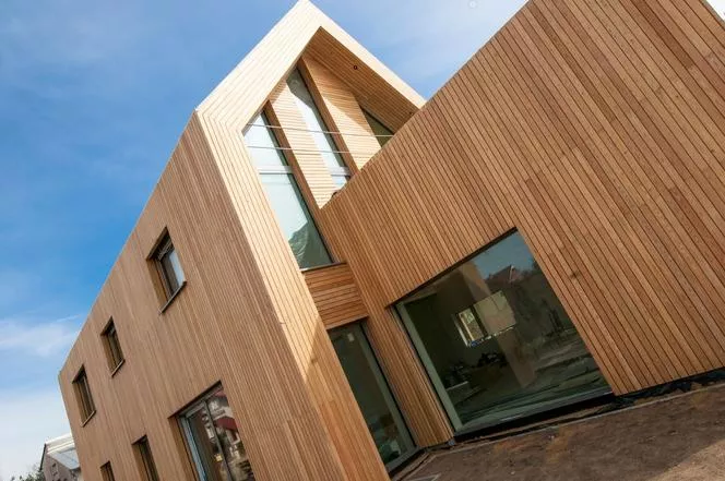 Obklad môže byť vyrobený aj zo špeciálne profilovaných fasádnych dosiek zo sibírskeho smrekovca. Výrobcovia ponúkajú rôzne modely. Majú podrezané okraje, čo umožňuje zasunúť jeden prvok do druhého. Takáto konštrukcia sa najčastejšie vyrába s presahom, takže musíte skontrolovať, aký povrch pokrýva doska. Vložením prvkov do seba je obklad tesnejší, čo zabraňuje vniknutiu vody alebo snehu do konštrukcie. Fasádne dosky sú zvyčajne užšie ako terasové profily, takže obklad pôsobí ľahšie a štíhlejšie. Môžu byť aj tenšie, napr.1,8-2 cm, pretože neunesú náklad.