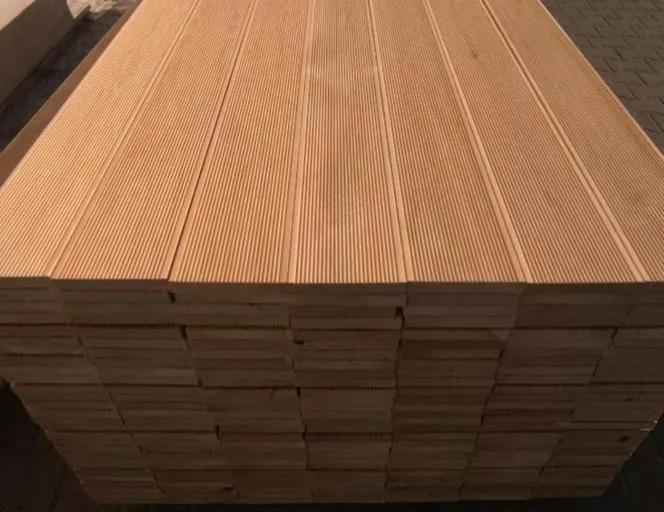 Rovnaký materiál je možné použiť na fasádu a terasu. Pôjde o tradičné dosky s rovnými stranami a zaoblenými, mierne profilovanými alebo ostro zrezanými rohmi. Sú hrubé 2,4-3 cm a široké asi 10-15 cm. Dĺžka hriadeľa závisí od výrobcu. Väčšina má 2-3 metre, ale nájdeme aj 5-metrové. Dosky sibírskeho smrekovca, fasádne aj terasové, môžu byť hladké alebo drážkované, teda s drážkami. Môžete si vybrať z tenkých a hustých drážok alebo hrubších, ale menej často vyrábaných. Drážkovanie môže byť jednostranné alebo hore a dole.