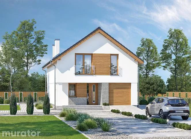 Dizajn domu M239c Doborowy - variant III je skvelá ponuka pre päťčlennú rodinu. Prednú časť prízemia zaberá zádverie, garáž a kotolňa.